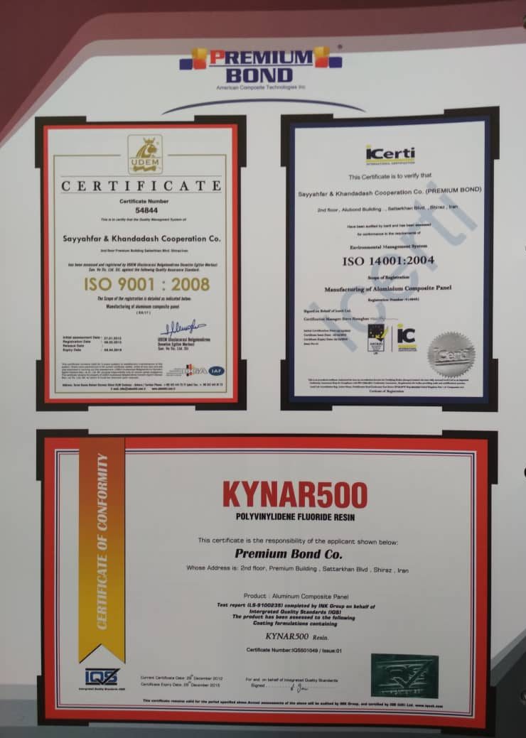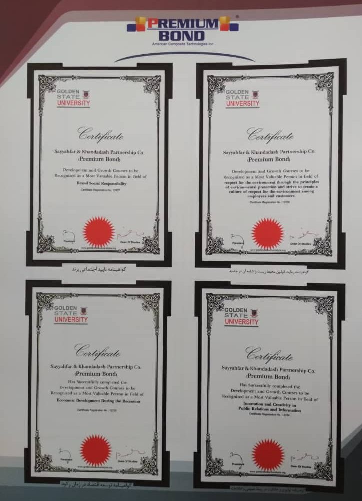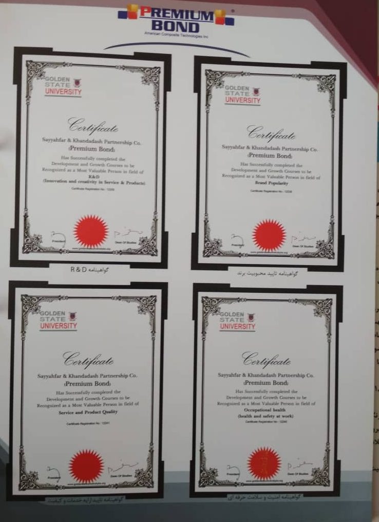 در زیر تعدادی از مجوز ها و گواهی های کنترل کیفیت (CERTIFICATE) شرکت پرمیوم باند مشاهده نمایید.